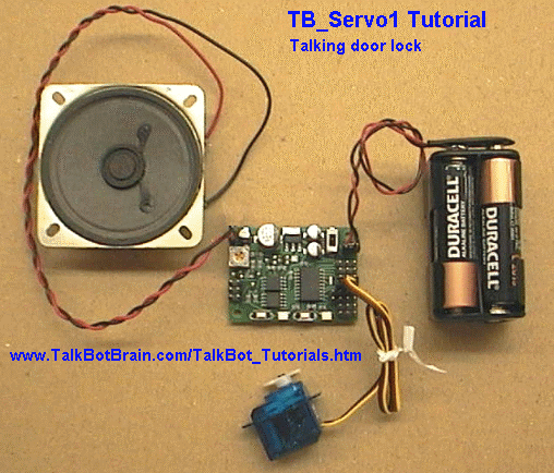 The whole project is contained in this .ZIP file. It contains the sound library, firmware, HEX file, C source code etc. TB_Servo1.ZIP (98 kb) Page last updated; Oct 19th 2009 - Copyright 2009 - www.TalkBotBrain.com Back to tutorials page |